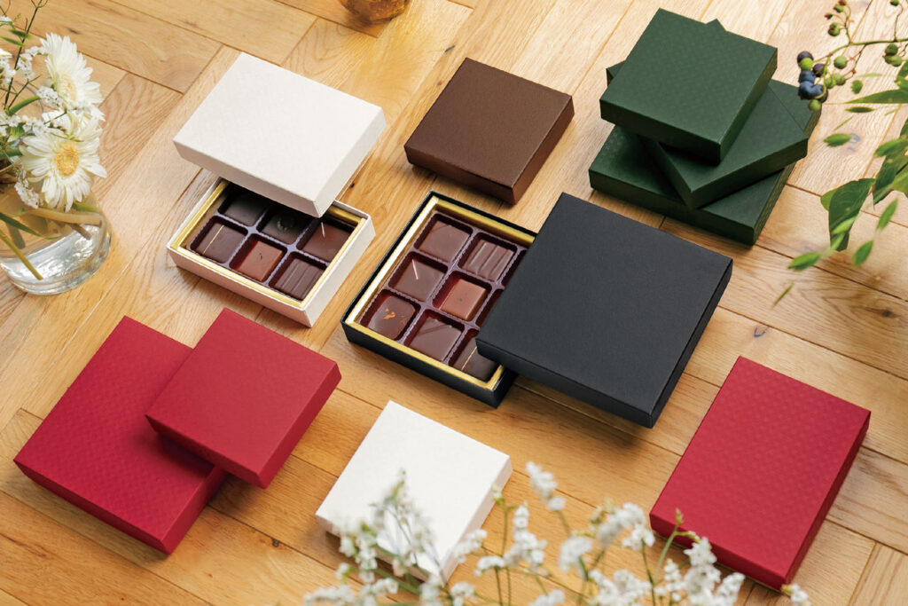高級感のある貼箱がチョコレートの魅力を引き立たせます。